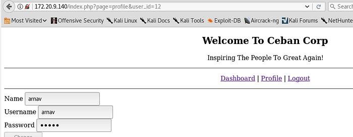 The thing which caught my eye was the id parameter. Thinking for potential IDOR, I tried playing with it but alas I wasn’t able to change my user. No problem, let us head over to the profile part.