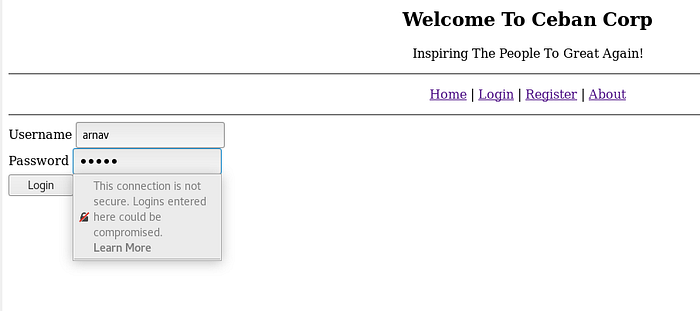 Port 80 looks to be the way in because anyway it was written in the description about web application. So we navigate to the ip in the browser and are greeted with this:-
