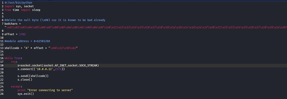 Hmm, doesn’t seem like we have bad characters except for the null byte.