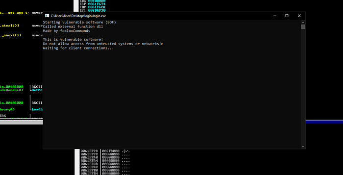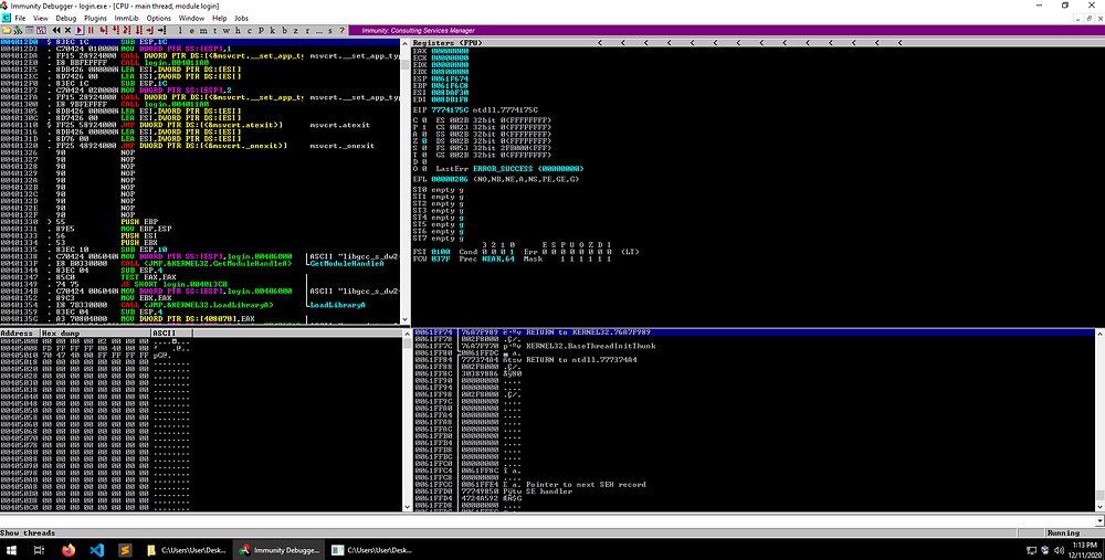 Launched Immunity Debugger and opened login.exe. It required login_support.dll because.. you’ll see. (;