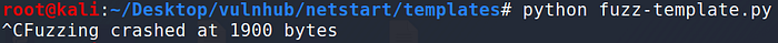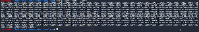We can see it crashed at 1900 bytes. Let’s generate a pattern using msf-pattern_create.