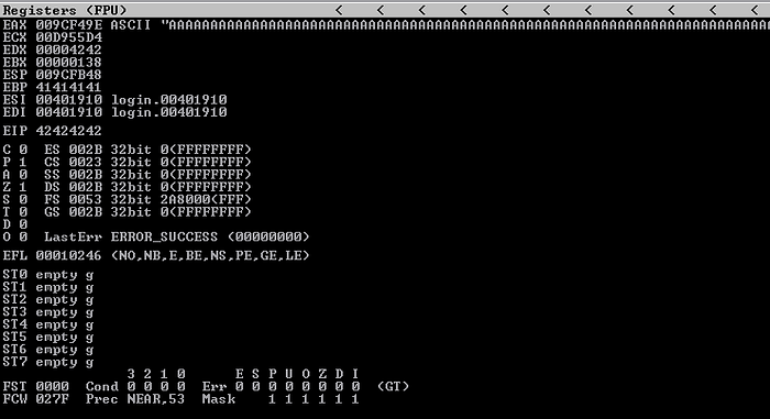 We can control the EIP! We overwritten the EIP with 4 Bs.