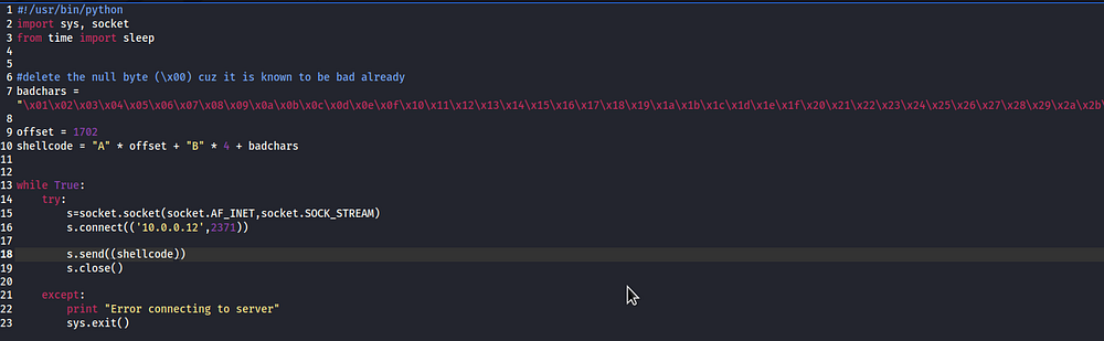 I’ve removed \x00 (null byte) from the bytearray because it is an already known bad character.