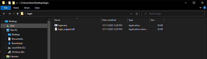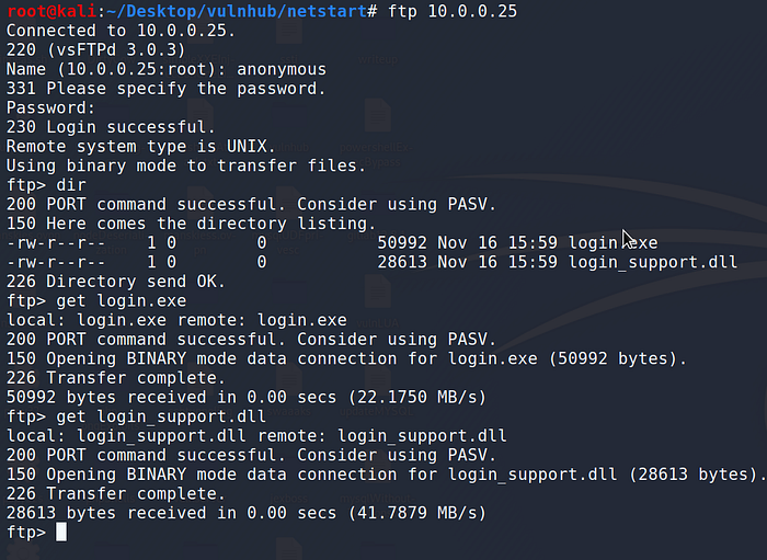 I’ve seen 2 files in the ftp directory, login.exe and login_support.dll, I downloaded them to my machine so I can examine and debug the program.