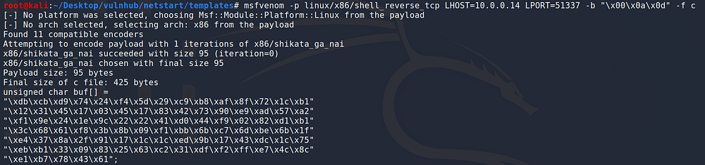 Now I’m going to generate a shellcode with msfvenom. I’ve added x0a and x0d as bad characters, because they are commonly bad characters as well.