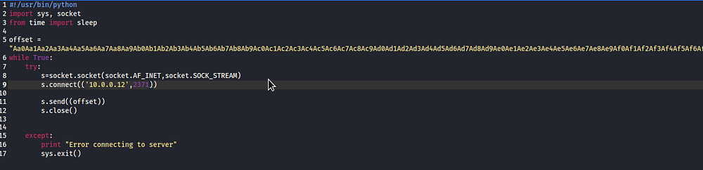 I tried to connect to the CommandoVM on port 2371 and it successfully connected and requested the exact same thing as the target on port 2371. If this is vulnerable to BoF we can exploit the target machine!