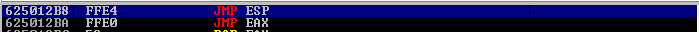 625012b8 is indeed JMP ESP. Now the next script is going to verify the address, I’m going to set a breakpoint at this address.