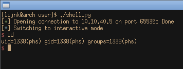 As it turns out though, this doesn’t actually matter as later on, we’ll find out the service is directly running as the phs user, so we won’t actually get the gid of 0. There also aren’t too many files out there that give you extra permissions as group root, but it’s something to keep in mind when using these functions.