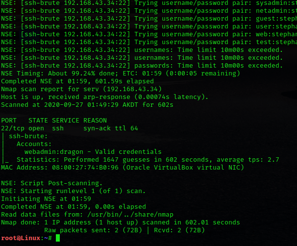“# nmap -vv — script =ssh-brute.nse -p 22 192.168.43.34”.