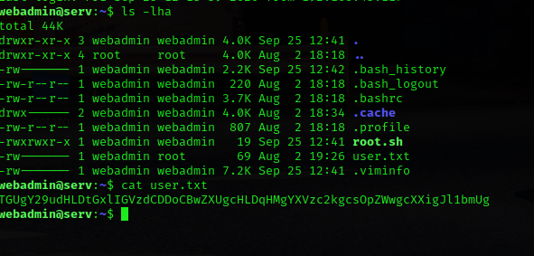 Then i created a root.sh file in webmaster’s (user) home directory.