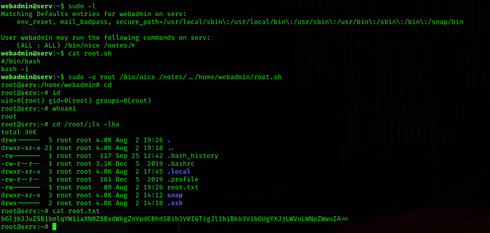 And after that “$ sudo /bin/nice /notes../home/webmaster/root.sh”