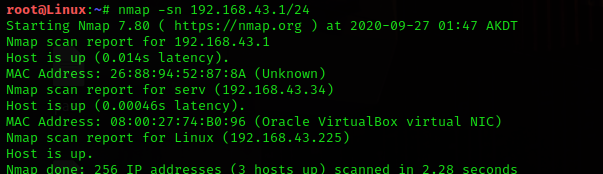 “# nmap -sn 192.168.43.1/24”