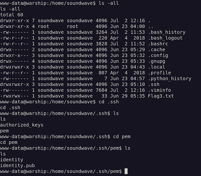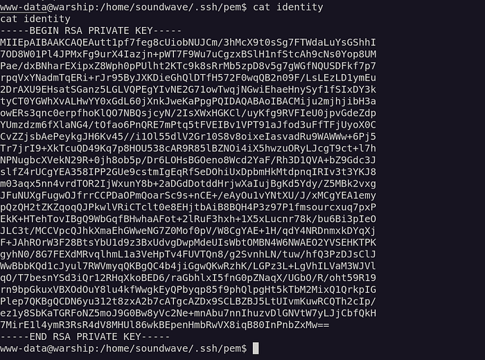 We can’t do anything more from here. So let’s try other methods. we got ssh key of the user soundwave only. In NMAP scanning we found that SSH port is open so try to login via ssh with the captured ssh key