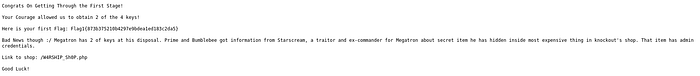 Okay now go to the next part,visit the URL given.<Ip_addr>/W4RSHIP_Sh0P.php. It will get you into a shop