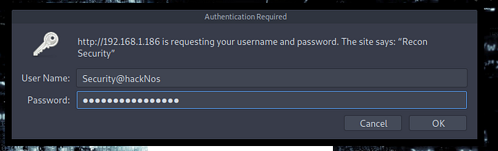 The only thing the server is telling us seems to be the header “Security@hackNos” maybe it is a username or password?