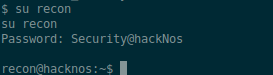 After looking around the box for ages, and finding nothing of much use, I did see one user on the box called recon, so on a whim I tried su’ing to them using the same password as the login box from earlier.
