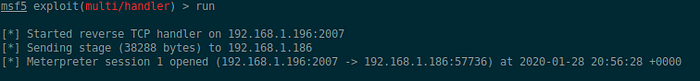We dont get any feedback from the upload but let’s assume that it worked and move onto the next step. We need to start a meterpreter handler to hopefully catch the call back.