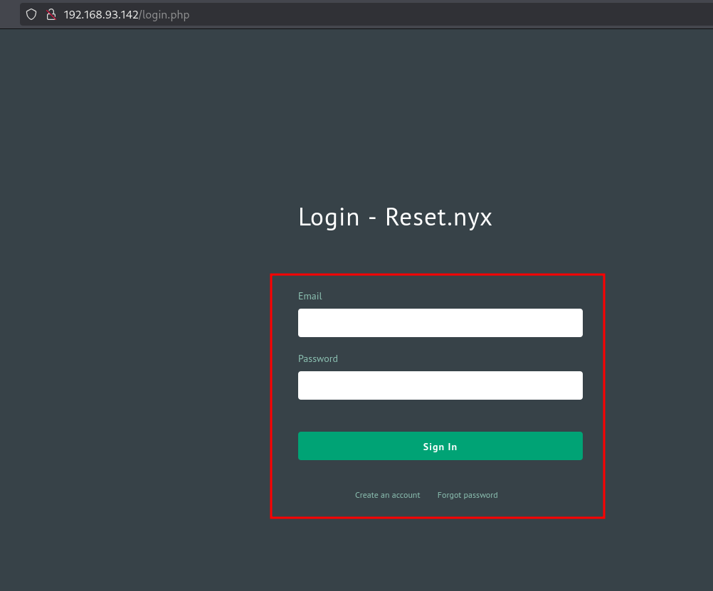 Una vez se accede al login.php se observa que tiene para iniciar sesión (ahora carecemos de credenciales válidas, pero tenemos usuarios), creación de cuentas y la funcionalidad para restablecer la contraseña.
