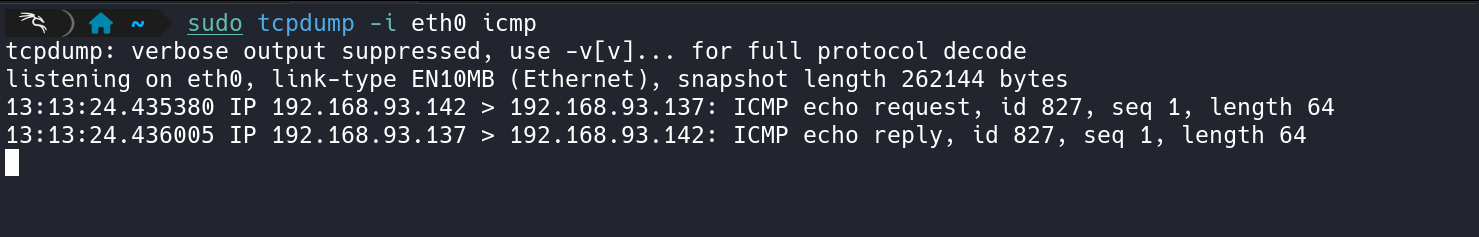 First, we check if we can perform a simple ping and receive it. To do this, we use tcpdump and send the request to our IP address:
