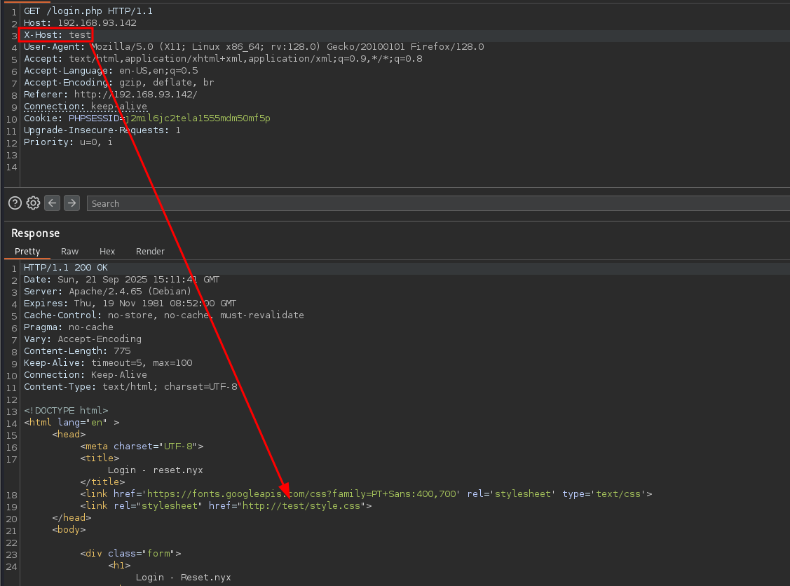 La manera más sencilla de saber si es vulnerable, es coger la cabecera Host y la modificamos a una que sea por ejemplo test, para ver si esta es modificada lo más sencillo es ver si en la respuesta de la solicitud hay enlaces absolutos del aplicativo web, por ejemplo: