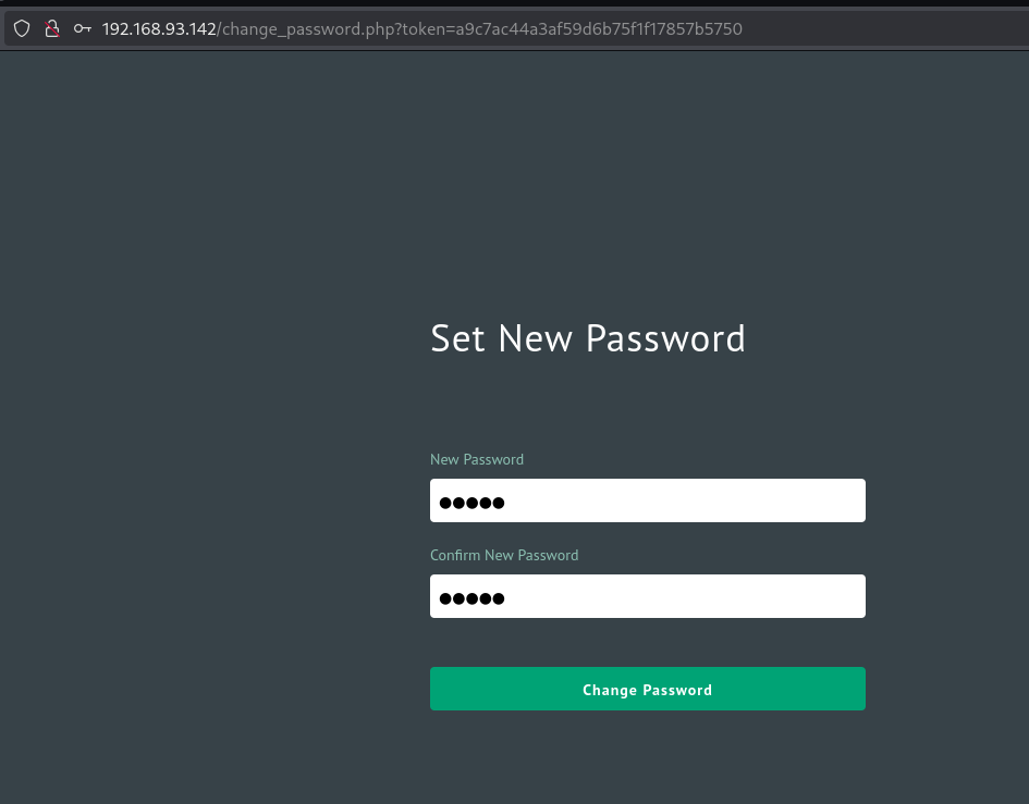 Se establece en la dirección URL el token conseguido y como se puede observar, se puede cambiar la contraseña del usuario admin: