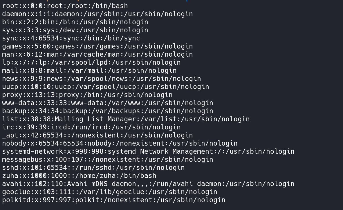 De acuerdo, con esta información se ha encontrado que hay un usuario llamado zuha, perfecto. La cosa es que aquí hay que pensar un poco en la situación para poder avanzar, que más cosa se puede sacar?