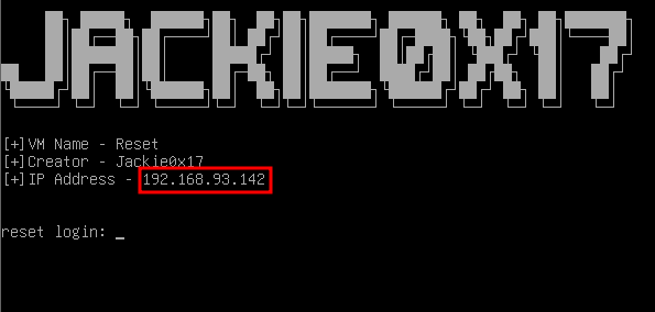 Once we have the IP address of the Reset machine, we scan to see which ports are open: