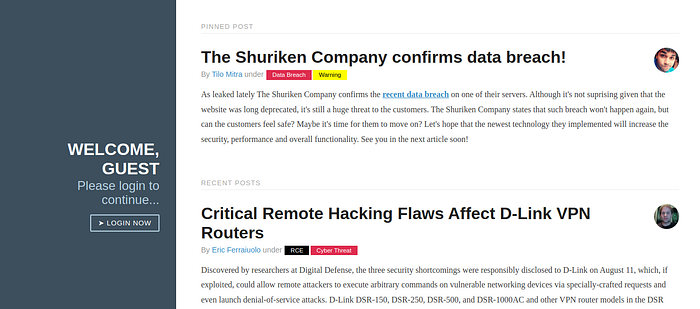 This is super fantastic box built by TheCyb3rW0lf. After the last breach, The Shuriken Company decided to move and rebuild its infrastructure. This time using different technology, and assuring us it’s gonna be secure. Will it be so? It’s up to you to prove otherwise.