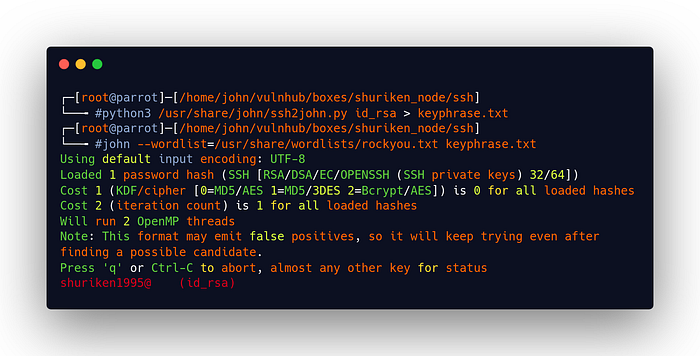 We have private keys of serv-adm user, that is another user on the box. We have to get the passphrase key, which we can do using ss2john.py, let’s do it.