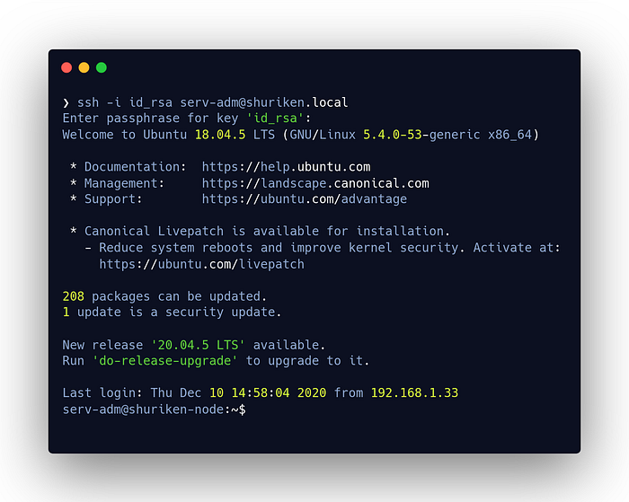 Hurray! We have the passphrase, now we can login as serv-adm user with private keys.
