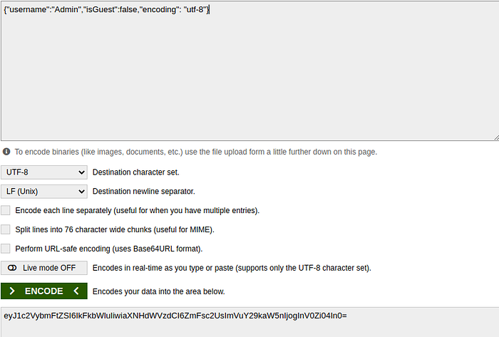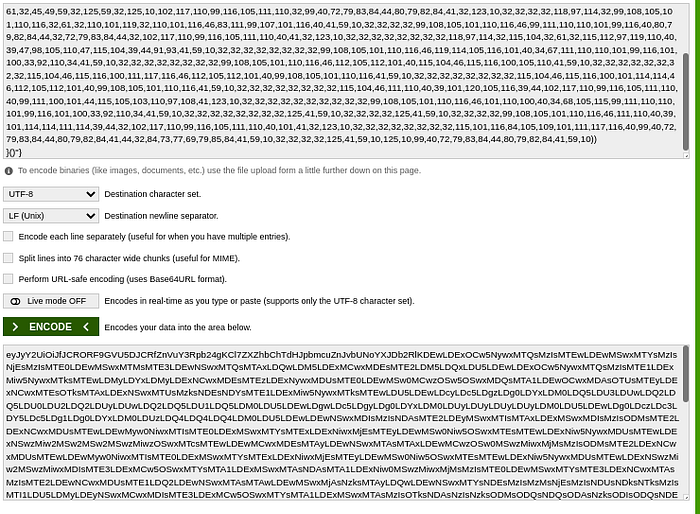 And that’s not it, you have to put this payload in the object like this and convert it into base64.