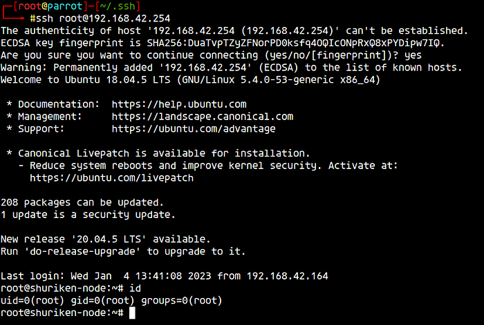At that point, I assumed that it had been downloaded into /root/.ssh/, so I tried to ssh login and successfully we rooted the box.