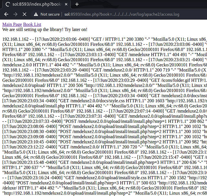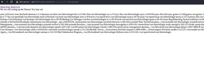 here i have an entry in my /etc/hosts file that sol=192.168.43.234, so don’t be confused. Here if look at the url “http://192.168.43.235:8593/index.php?book=list” , It may be vulnerable to Local File Inclusion (LFI).