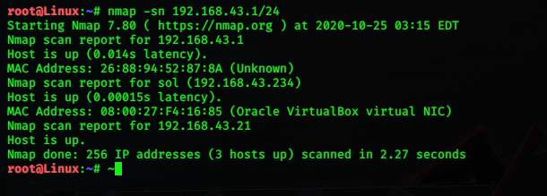 “# nmap -sn 192.168.43.1/24”