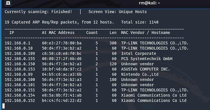netdiscover -i eth0 -r 192.168.0.0/24