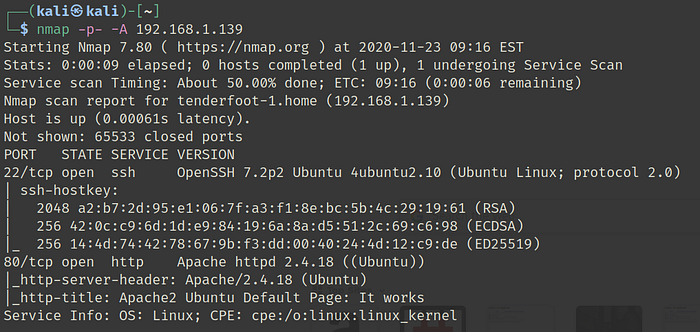 nmap -p- -A <IP>Press enter or click to view image in full size