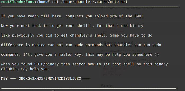 Now cd /home/chandler/.cache/ . 3 files, open note.txt :