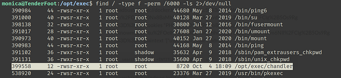 find / -type f -perm /6000 -ls 2>/dev/nullPress enter or click to view image in full size