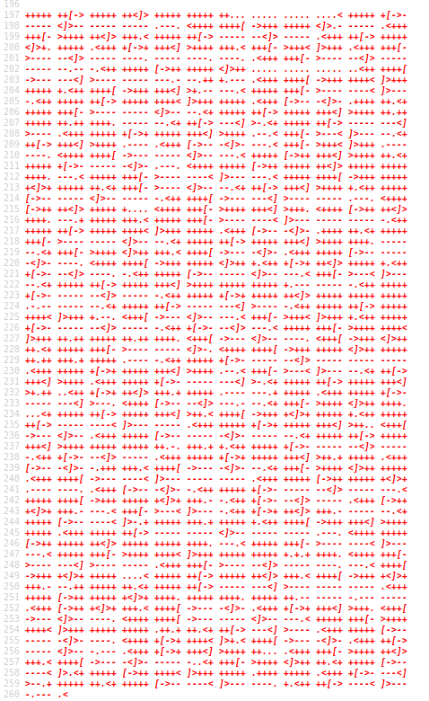 It’s a brainfuck code. Decode ti with this online tool. It gives us the following message :