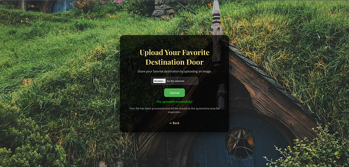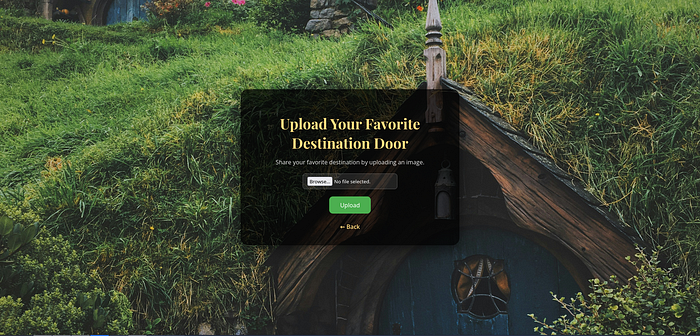 Following the upload button, we get to a page where we can upload our favourite door. The upload only works for files with an image extension :