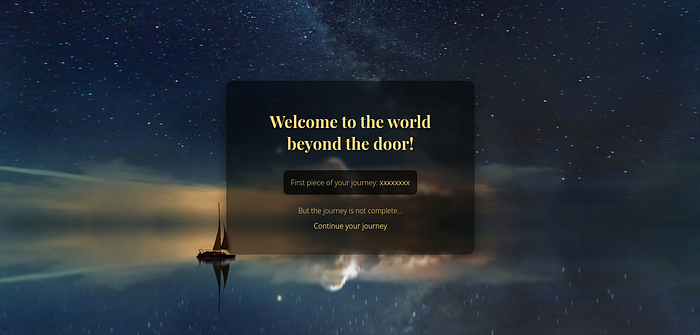 After authenticating, we then get to the /door7890opened/ endpoint, where we find a part of the flag !
