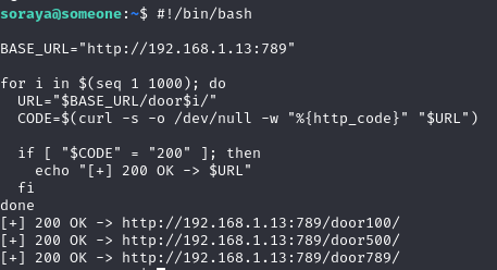 To efficiently enumerate all possible doors, we use a simple Bash script to identify endpoints returning HTTP 200 responses.