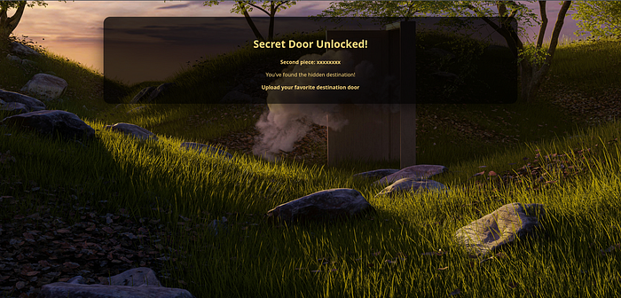 door7890opened/homes/?id=%2531%2530We then get to a secret door, where another fragment of the flag is given !