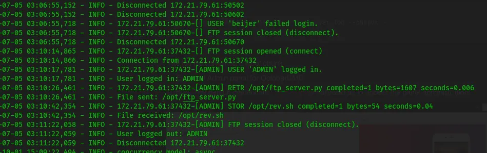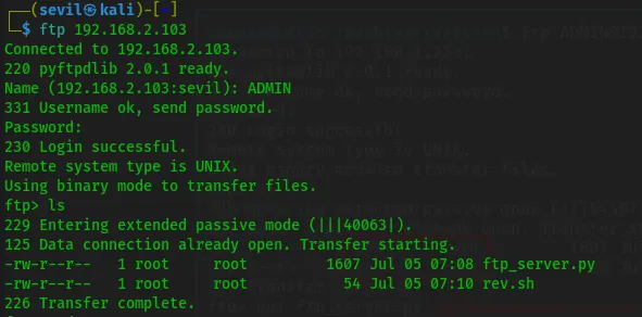 The FTP server contained both the ftp_server.py and rev.sh file which owned by root…