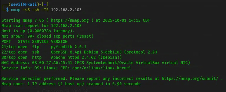 nmap -sS -sV -T5 192.168.2.103