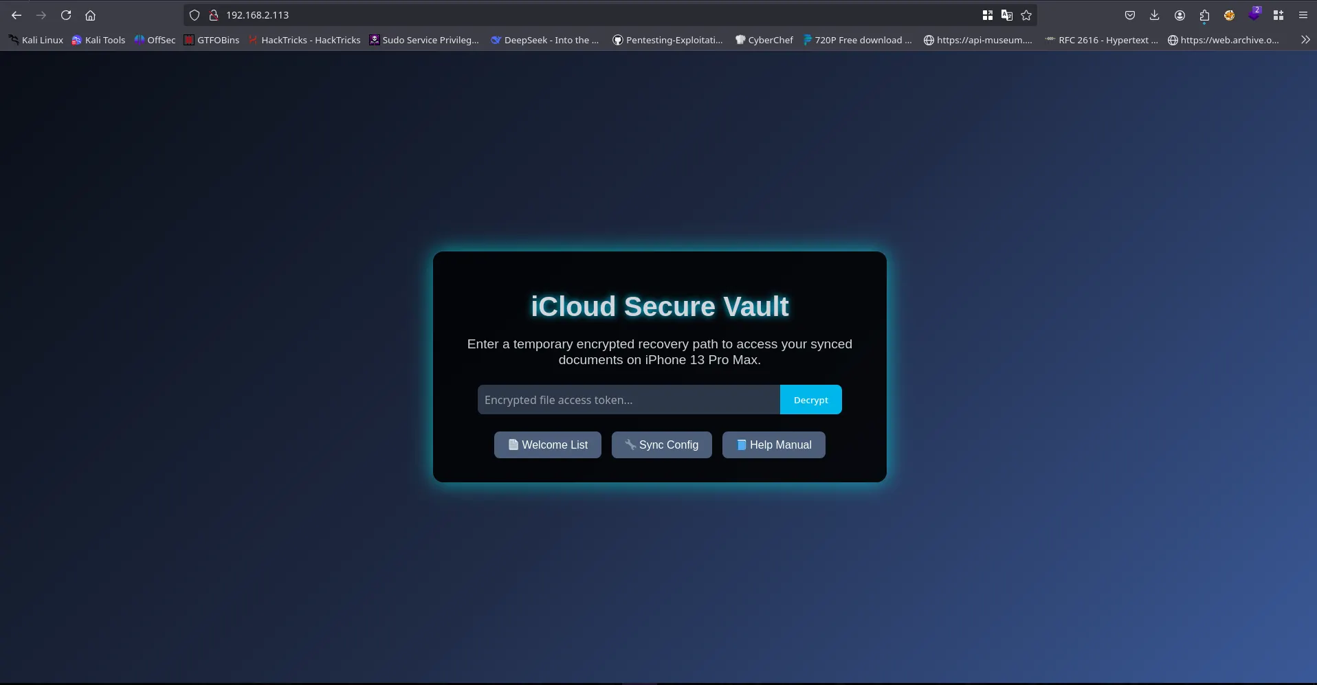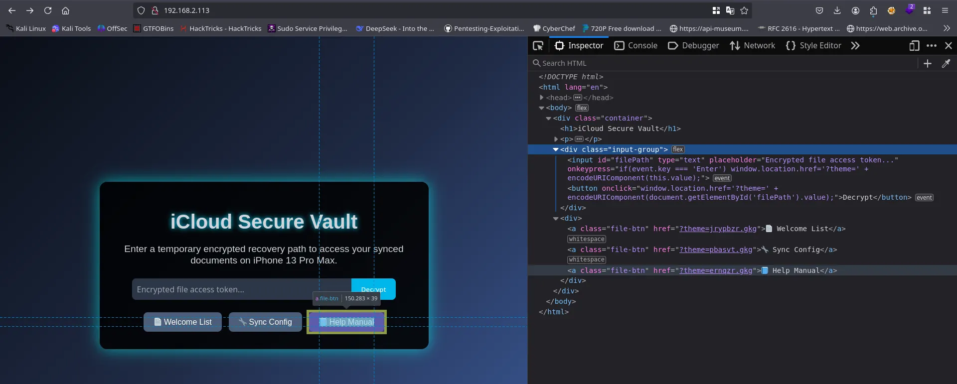 Use the encrypted path input to explore hidden files!
